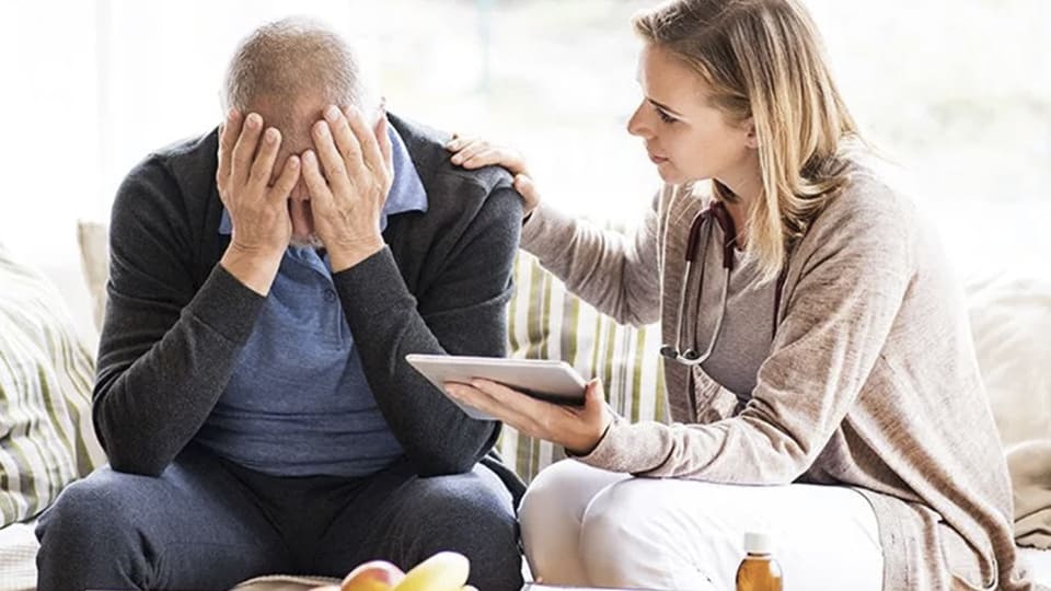 Проведение первичного осмотра. Выполняется после опроса больного или его родственников. Во время беседы определяются имеющиеся жалобы, время их появления, возможные провоцирующие факторы. Важно определить, имеются ли расстройства в ближайших родственников, были ли в анамнезе травмы головы, серьезные патологии головного мозга, сосудов и других важных органов. Во время осмотра на дому врач применяет только ручные техники. Это дает возможность оценить состояние пациента, наличие признаков обезвоживания и истощения, симптомов хронических патологий внутренних органов. Если этих сведений недостаточно, врач выдает направление на обследование в центре либо сразу госпитализирует больного.